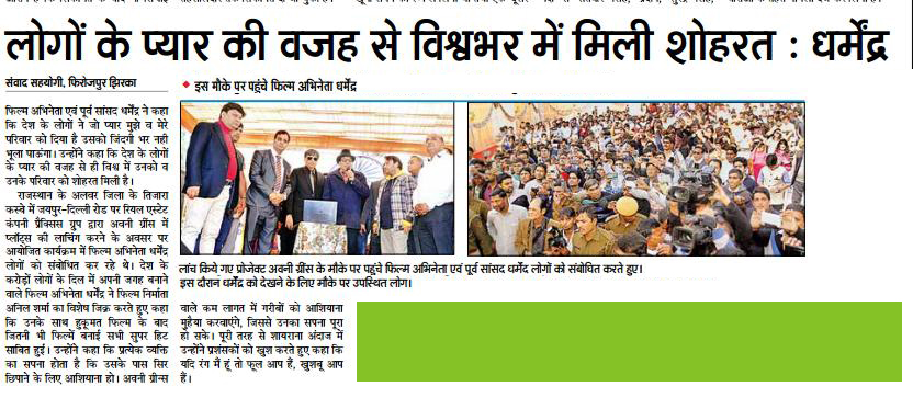 The Legend of Indian Film Industry, Super Star Mr. Dharmendra Inaugurated the Project on 26th January, 2016 at the Township Office. He said that he is